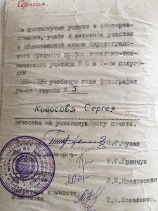 Естественно не о каком длительном обучении после выпускного в 8 классе и мысли не было. Желание было одно, по быстрей получить хоть какую нибудь специальность и идти работать. По этому через год в 1989 году я закончил СПТУ № 6 г. Кировограда, получив специальность СЛЕСАРЬ механосборочных работ 2 разряда и пошел работать на за завод «Гидросила».